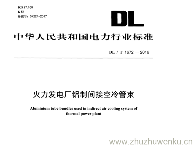 DL/T 1672-2016 pdf下载 火力发电厂铝制间接空冷管束。Aluminium tube bundles used in indirect air cooling system of thermal power plant.