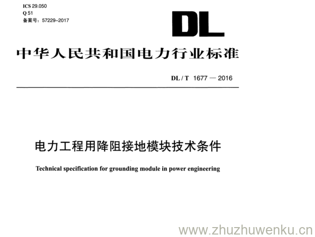 DL/T 1677-2016 pdf下载 电力工程用降阻接地模块技术条件。Technical specification for grounding module in power engineering.