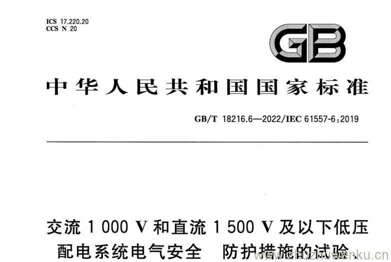 GB∕T 18216.6-2022 pdf下载 交流1000V和直流1500V及以下低压配电系统电气安全 防护措施的试验、测量或监控设备 第6部分:TT、TN和IT系统中剩余电流装置(RCD)的有效性。