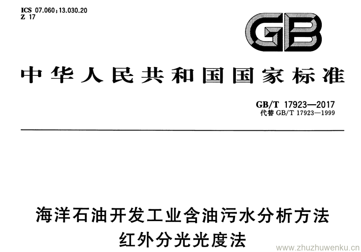 GB/T 17923-2017 pdf下载 海洋石油开发工业含油污水分析方法红外分光光度法
