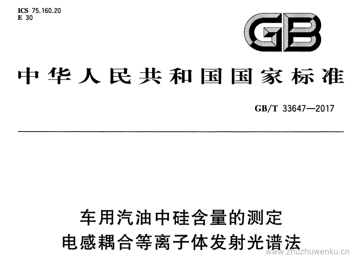 GB/T 33647-2017 pdf下载 车用汽油中硅含量的测定电感顆合等罔子体发射光谱法