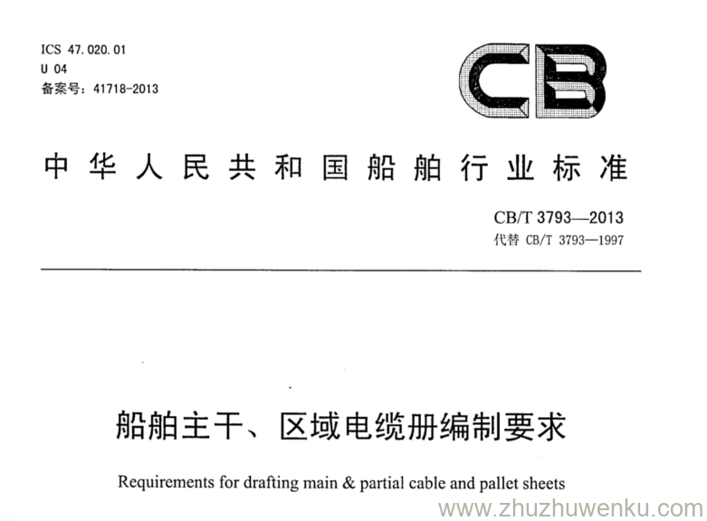 CB/T 3793-2013 pdf下载 船舶主干、区域电缆册编制要求。Requirements for drafting main & partial cable and pallet sheets.