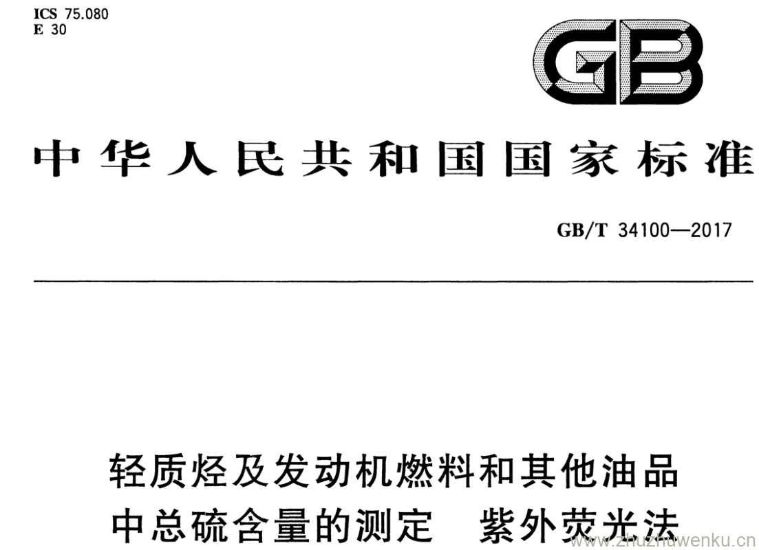 GB/T 34100-2017 pdf下载 轻质烃及发动机燃料和其他油品中总硫含量的测定紫外荧光法