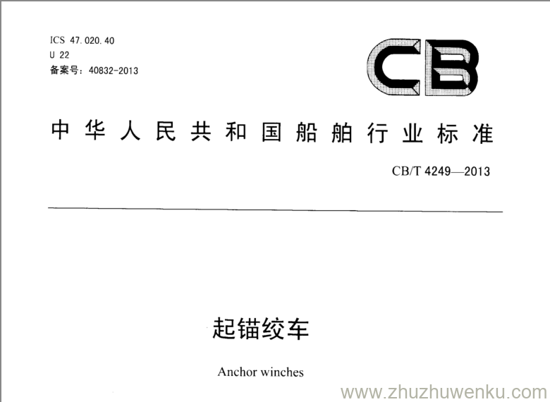 CB/T 4249-2013 pdf下载 起锚绞车。Anchor winches.