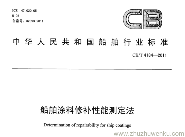 CB/T 4184-2011 pdf下载 船舶涂料修补性能测定法。Determination of repairability for ship coatings.