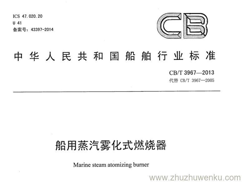 CB/T 3967-2013 pdf下载 船用蒸汽雾化式燃烧器。Marine steam atomizing burner.