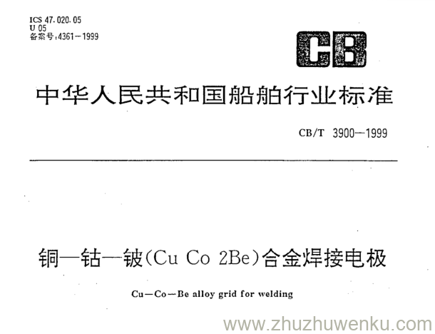 CB/T 3900-1999 pdf下载 铜-钴-铍(Cu Co 2Be)合金焊接电极。Cu一Co-Be alloy grid for welding.