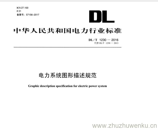 DL/T 1230-2016 pdf下载 电力系统图形描述规范。Graphic description specification for electric power system.