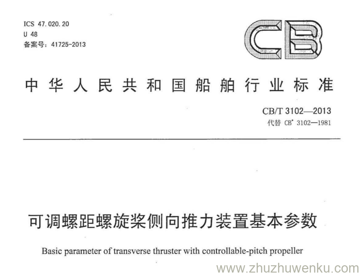 CB/T 3102-2013 pdf下载 可调距螺旋桨侧向推力装置基本参数。Basic para me ter of transverse thruster with controllable-pitch propeller.