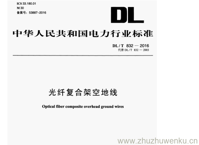 DL/T 832-2016 pdf下载 光纤复合架空地线。Optical fiber composite overhead ground wires.