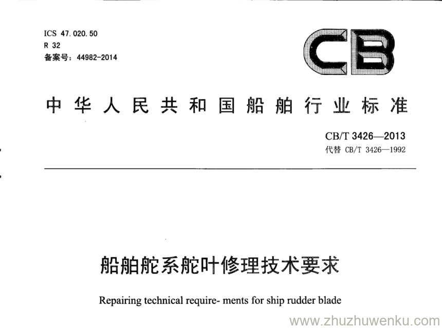 CB/T 3426-2013 pdf下载 船舶舵系舵叶修理技术要求。Repairing technical require ments for ship rudder blade.