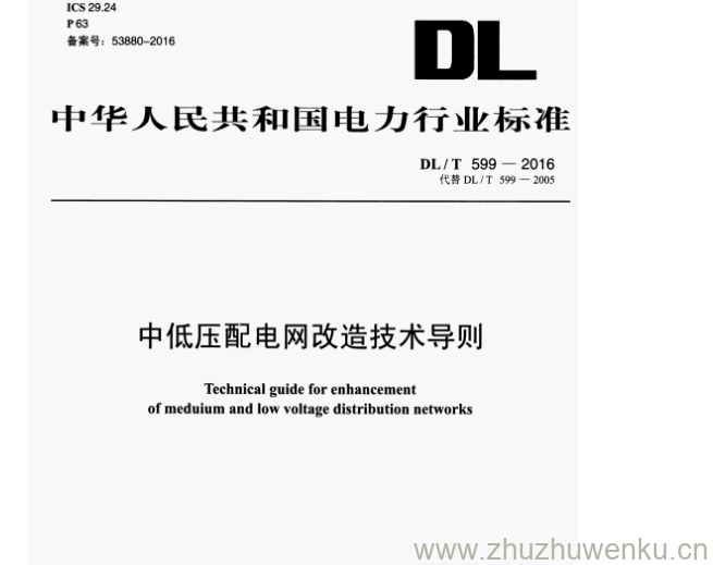 DL/T 599-2016 pdf下载 中低压配电网改造技术导则。Technical guide for enhancement of meduium and low voltage distribution networks.