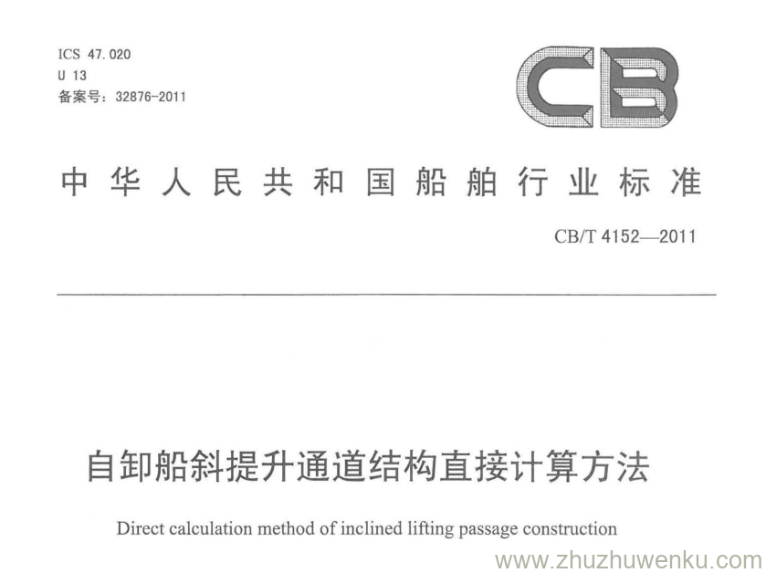 CB/T 4152-2011 pdf下载 自卸船斜提升通道结构直接计算方法。Direct calculation method of inclined lifting passage construction.
