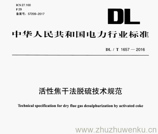 DL/T 1657-2016 pdf下载 活性焦干法脱硫技术规范。Technical specification for dry flue gas desulphurization by activated coke.
