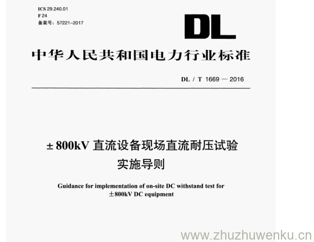 DL/T 1649-2016 pdf下载 ±800kV 直流设备现场直流耐压试验 实施导则。Guidance for implementation of on-site DC withstand test for 士800kVDC equipment.