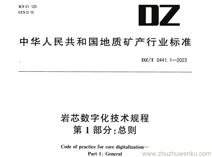 DZ/T 0441.1-2023 pdf下载 岩芯数字化技术规程 第1部分:总则。