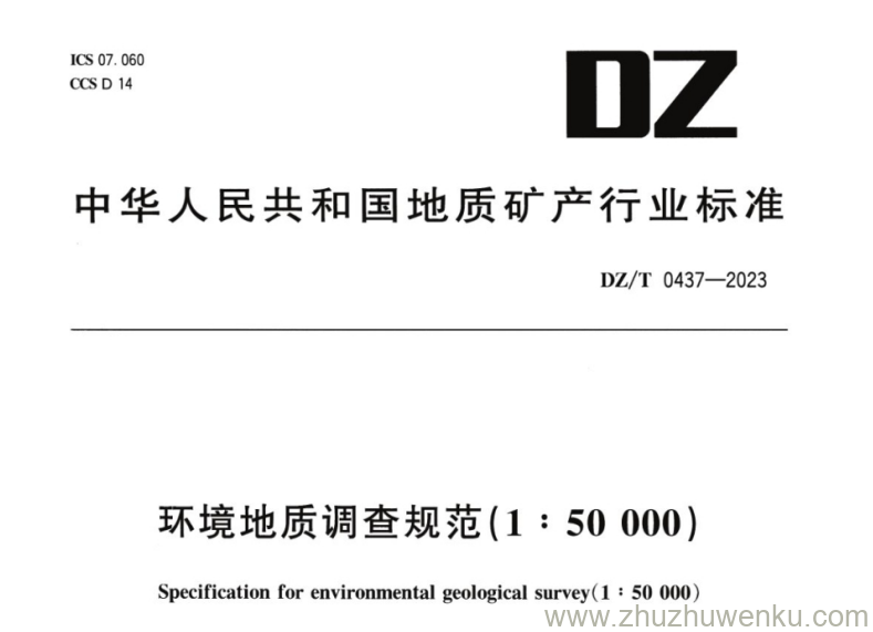 DZ/T 0437-2023 pdf下载 环境地质调查规范(1:50000)。