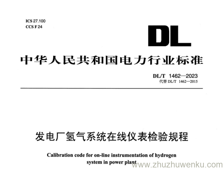 DL T 1462-2023 发电厂氢气系统在线仪表检验规程。