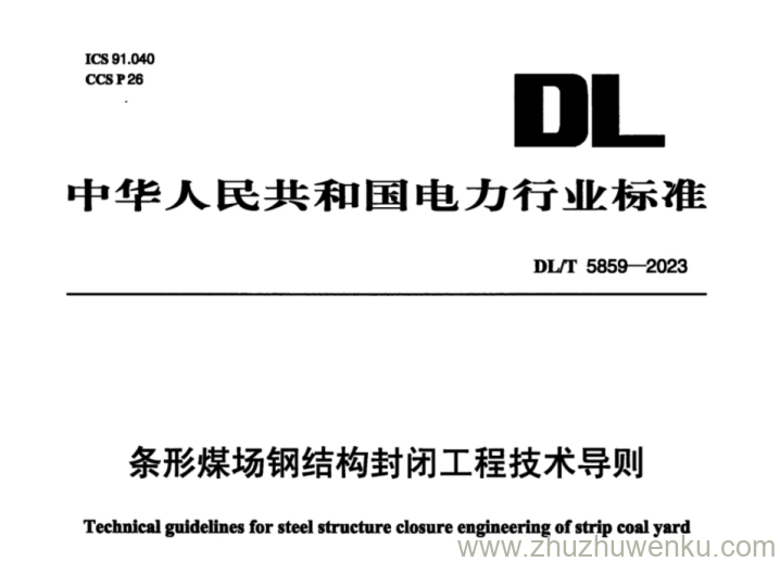 DL/T 5859-2023 pdf下载 条形煤场钢结构封闭工程技术导则。