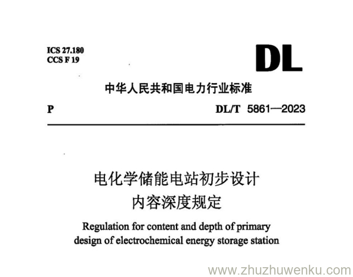 DL/T 5861-2023 pdf下载 电化学储能电站初步设计内容深度规定。