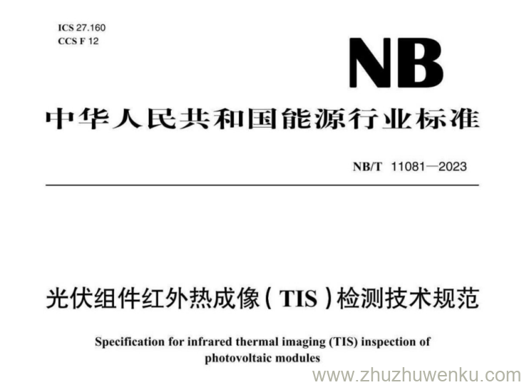NB/T 11081-2023 pdf下载 光伏组件红外热成像(TIS)检测技术规范。