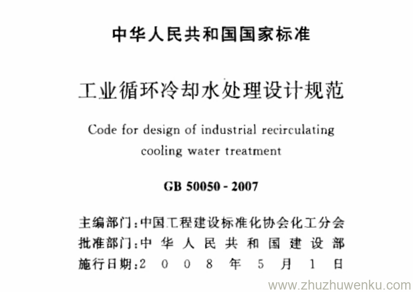 GB 50050-2007 pdf下载 工业循环冷却水处理设计规范。
