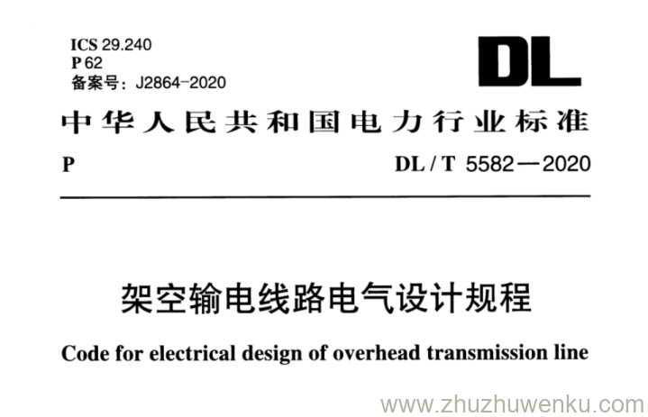 DL/T 5582-2020 pdf下载 架空输电线路电气设计规程。