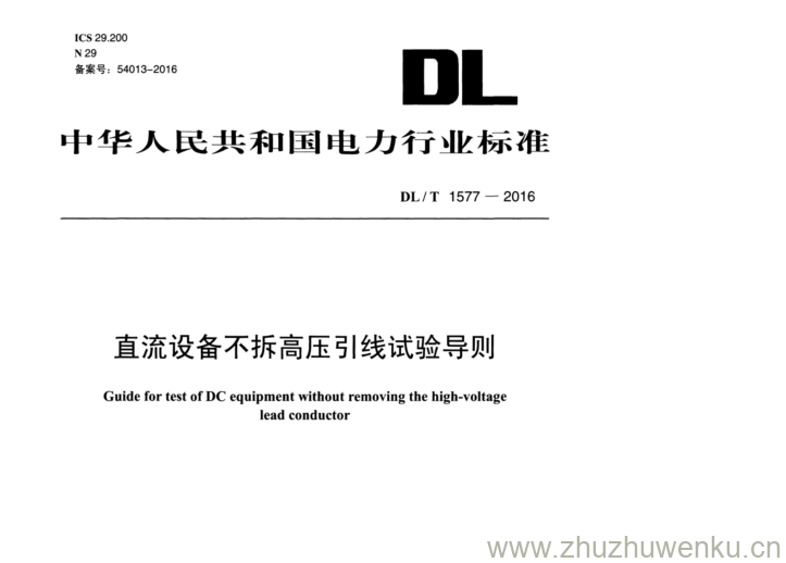 DL/T 1577-2016 pdf下载 直流设备不拆高压引线试验导则。Guide for test of DC equipment without removing the high-voltage lead conductor.