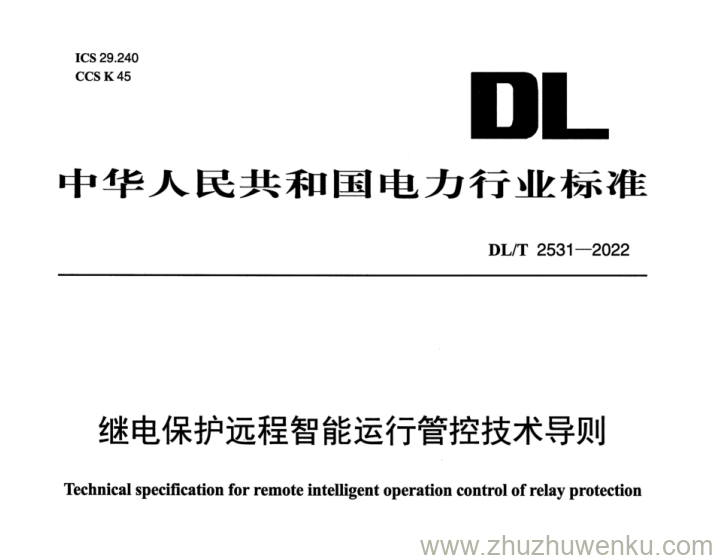 DL/T 2531-2022 pdf下载 继电保护远程智能运行管控技术导则。