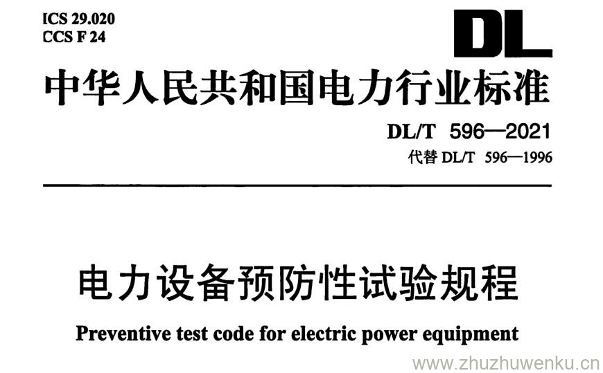 DL∕T 596-2021 pdf下载 电力设备预防性试验规程(附条文说明)。Preventive test code for electric power equipment.