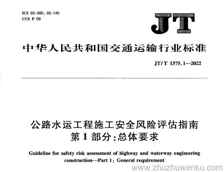 JT/T 1375.1-2022 pdf下载 公路水运工程施工安全风险评估指南 第1部分:总体要求。