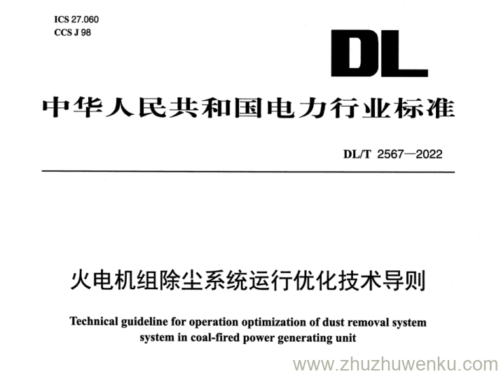 DL/T 2567-2022 pdf下载 火电机组除尘系统运行优化技术导则。