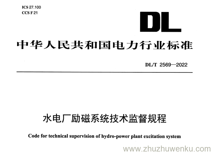 DL/T 2569-2022 pdf下载 水电厂励磁系统技术监督规程。