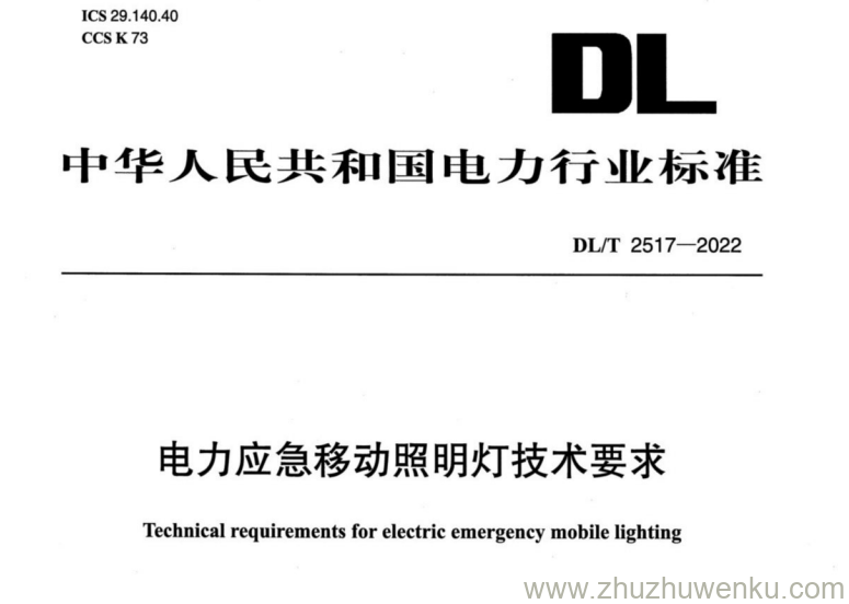 DL/T 2517-2022 pdf下载 电力应急移动照明灯技术要求。