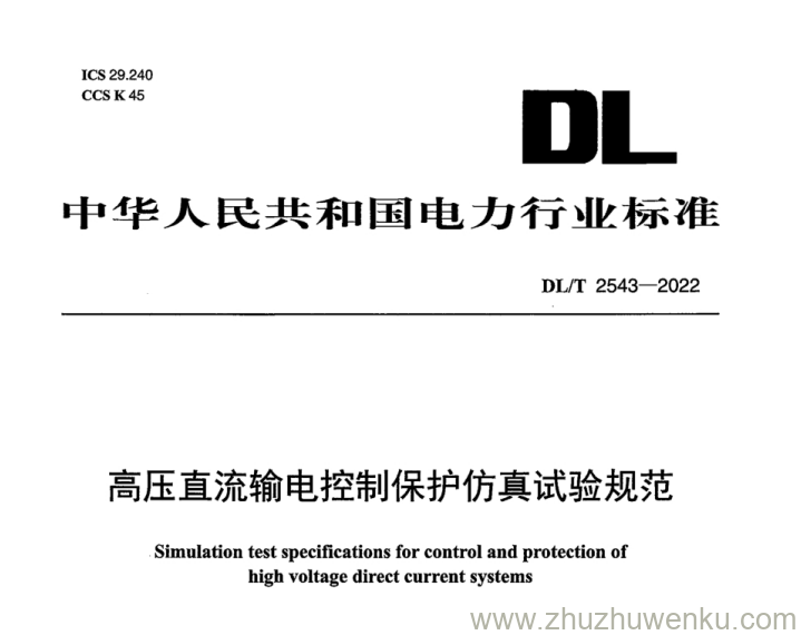 DL/T 2543-2022 pdf下载 高压直流输电控制保护仿真试验规范。