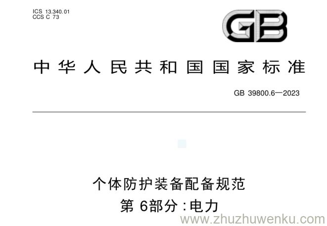 GB 39800.6-2023 pdf下载 个体防护装备配备规范 第6部分:电力。