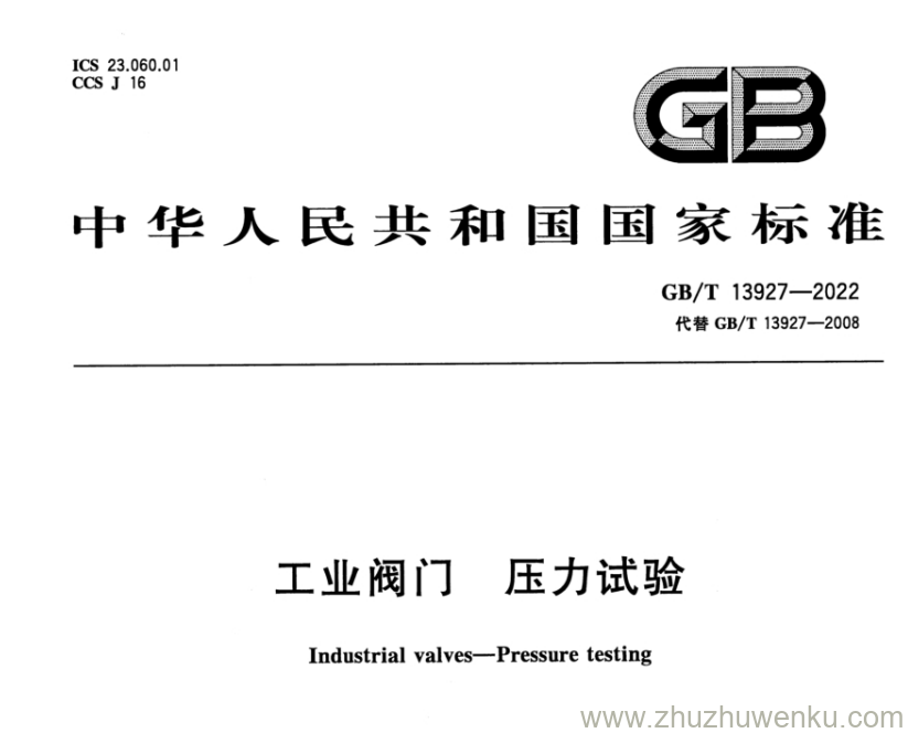GB/T 13927-2022 pdf下载 工业阀门 压力试验。