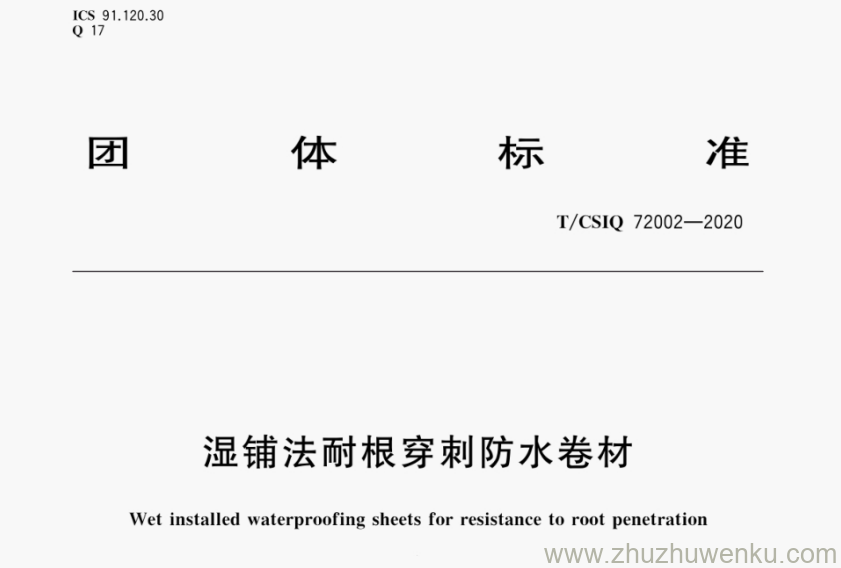 T/CSIQ 72002-2020 pdf下载 湿铺法耐根穿刺防水卷材。