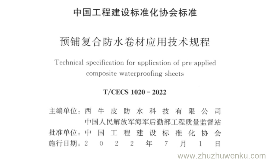 T/CECS 1020-2022 pdf下载 预铺复合防水卷材应用技术规程。