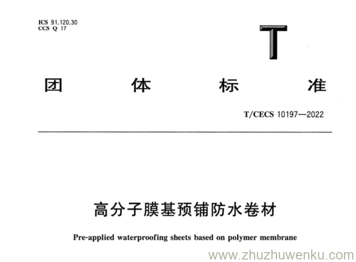 T/CECS 10197-2022 pdf下载 高分子膜基预铺防水卷材。