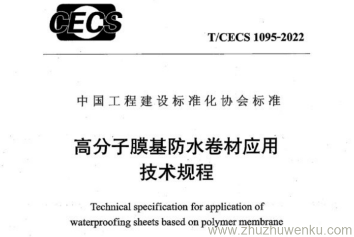 T/CECS 1095-2022 pdf下载 高分子膜基防水卷材应用技术规程。