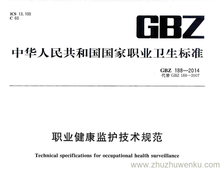 GBZ 188-2014 pdf下载 职业健康监护技术规范。