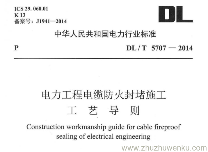 DL/T 5707-2014 pdf下载 电力工程电缆防火封堵施工工艺导则。