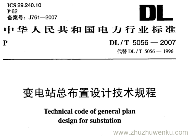 DL/T 5056-2007 pdf下载 变电站布置设计技术规程。
