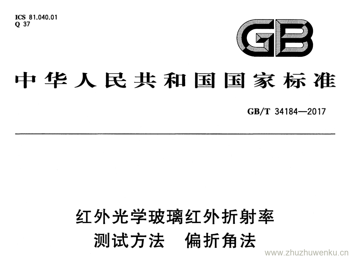 GB/T 34184-2017 pdf下载 红外光学玻璃红外折射率 测试方法 偏折角法