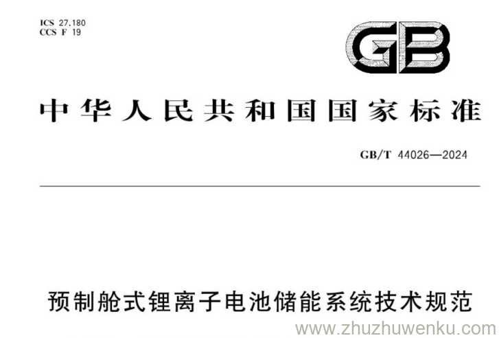 GB/T 44026-2024 pdf下载 预制舱式锂离子电池储能系统技术规范