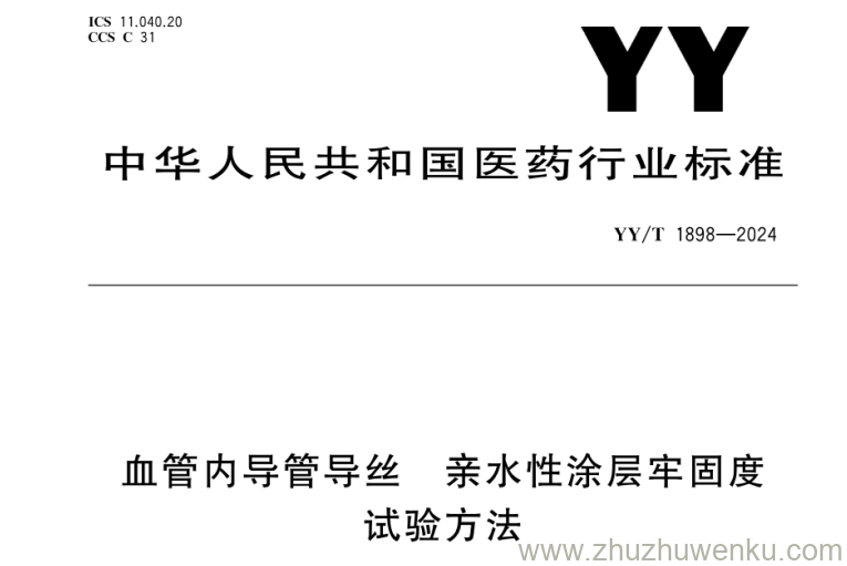 YY/T 1898-2024 pdf下载 血管内导管导丝亲水性涂层牢固度试验方法