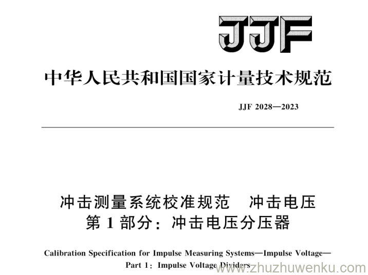 JJF 2028-2023 pdf下载 冲击测量系统校准规范 冲击电压 第1部分:冲击电压分压器