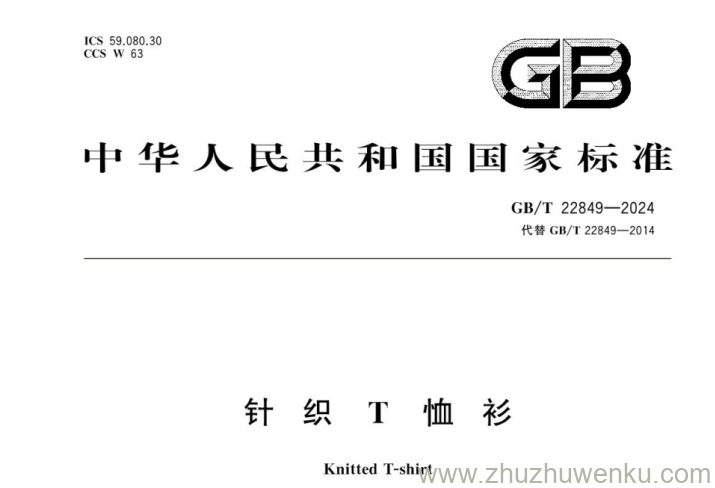 GB/T 22849-2024 pdf下载 针织T恤衫