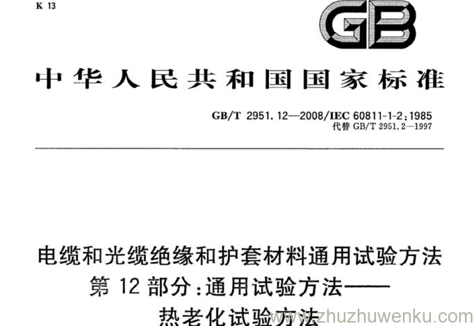 GB/T 2951.12-2008 pdf下载 电缆和光缆绝缘和护套材料通用试验方法 第12部分:通用试验方法 热老化试验方法
